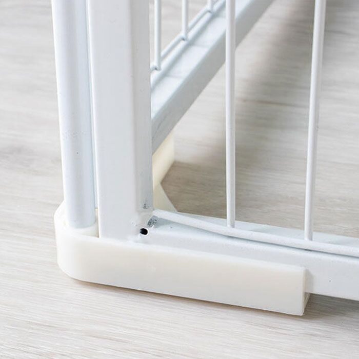 Som noget helt specielt leveres denne hvalpegård med solide plastik gulvbeskyttere der sikre at hvalpegården ikke laver ridser på dig gulv, og samtidig gør de hvalpegårdens facon mere stabil.