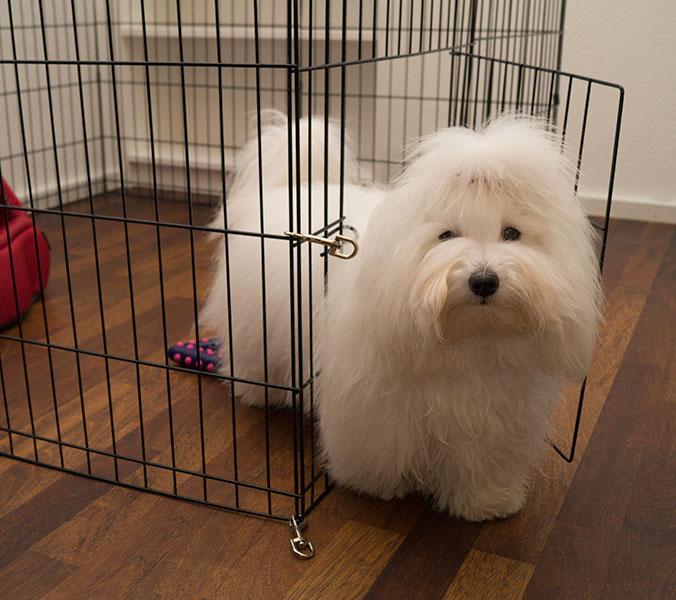 Med denne hvalpekravlegård kan du derfor frit lade din hvalp være alene i beskyttende rammer!