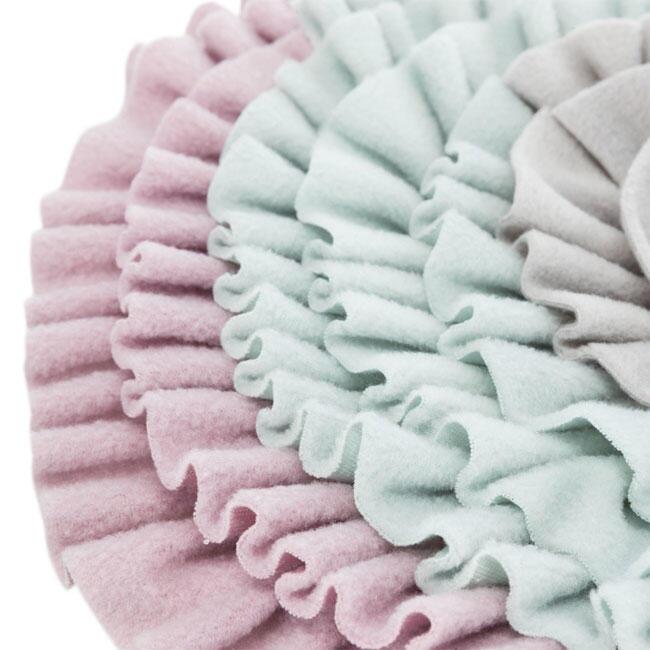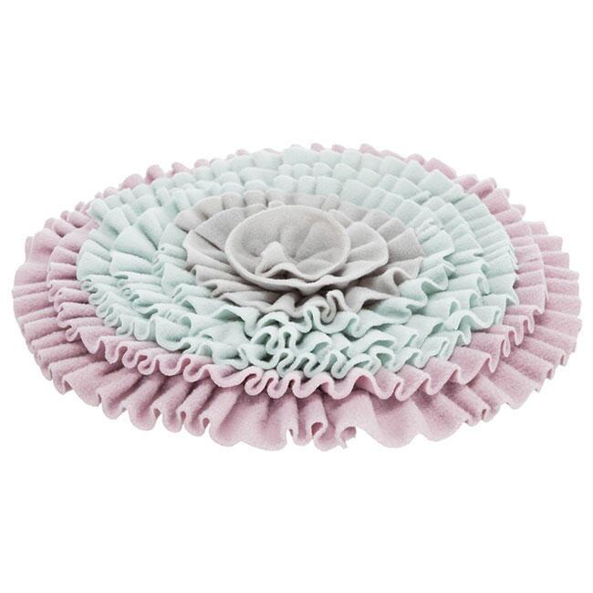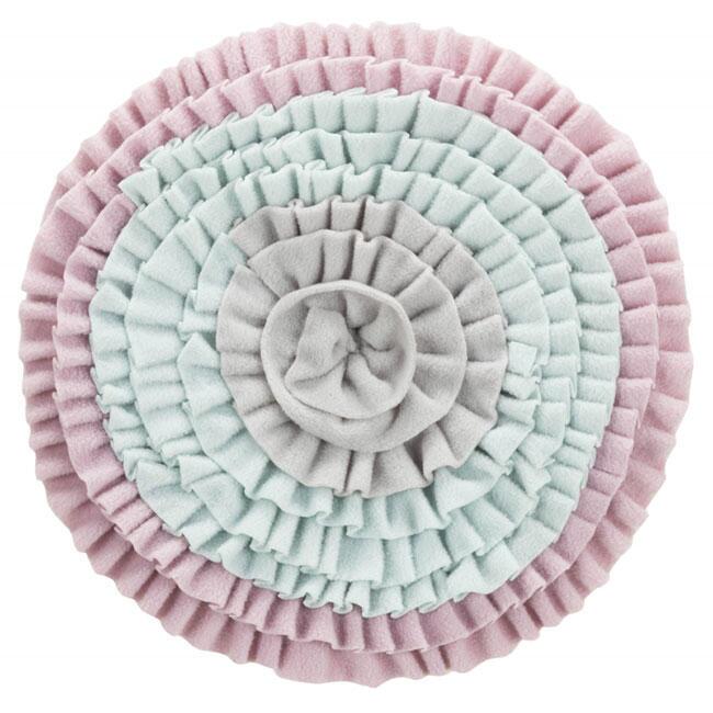 Giv din hvalp eller killing en sund udfordring med Junior Snusetæppe. Det er utroligt sundt for de små at blive trænet til at bruge deres sanser, og få stimuleret både sanser og intelligens. Dette snusetæppe er rundt og lavet i fine pastelfarver. Tæppet består af bløde fleeceflæser fastgjort på en rund måtte. Inden i måtten findes en udtagelig plastikdisk, som nemt kan gøres ren.