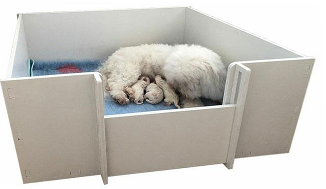 Du skal lægge et vaskbart tisseunderlag i bunden af fødekassen og lægge et blødt vetbedtæppe ovenpå. Nu er der klar til at byde de små hvalpe velkommen i en ren og lækker fødekasse!