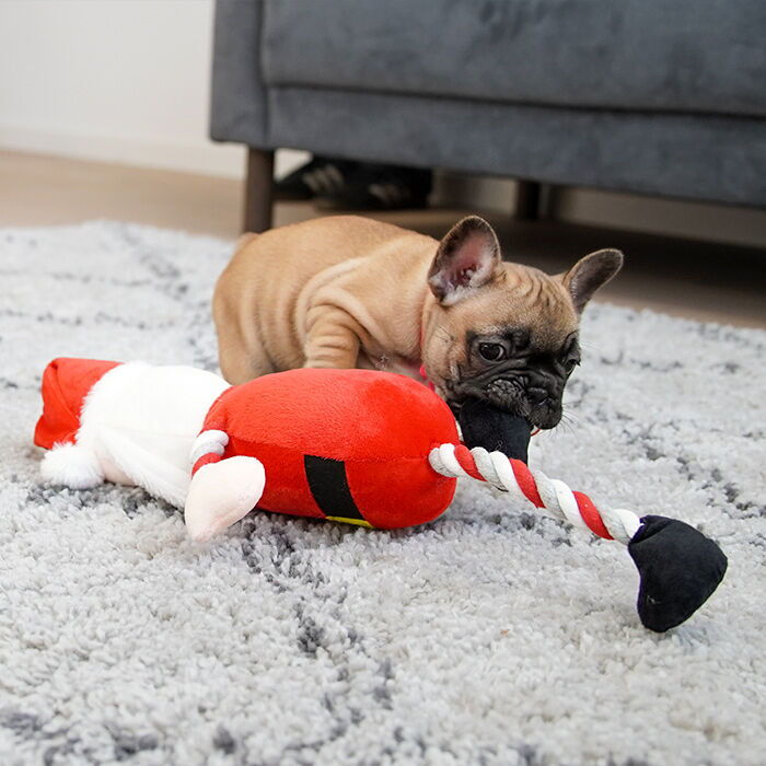 Hunden elsker bamser med indbygget reb, og her kan du tilbyde din hund en julebamse der straks bliver årets julehit, hvad enten du har en lille, mellem eller stor hund.