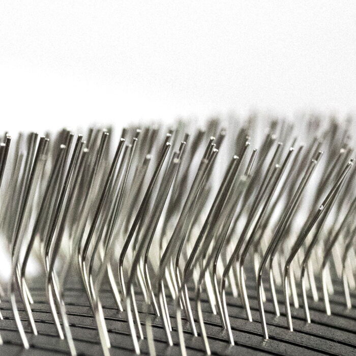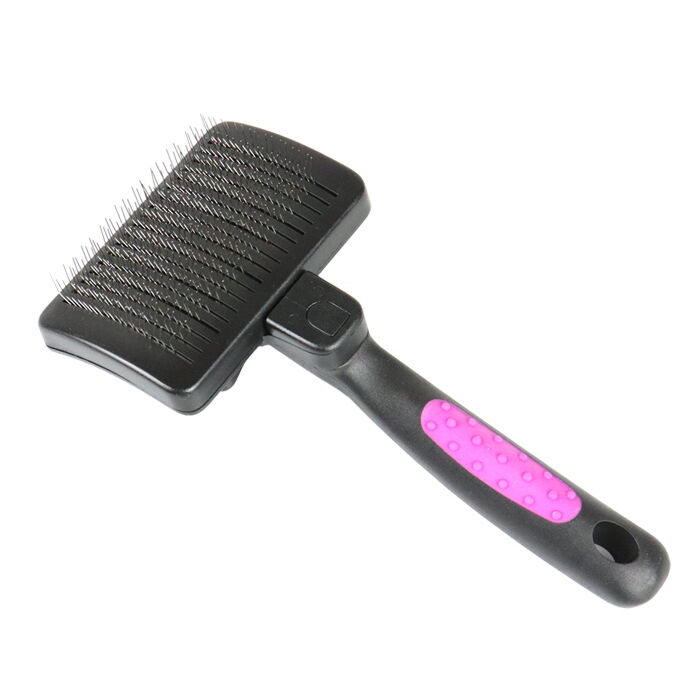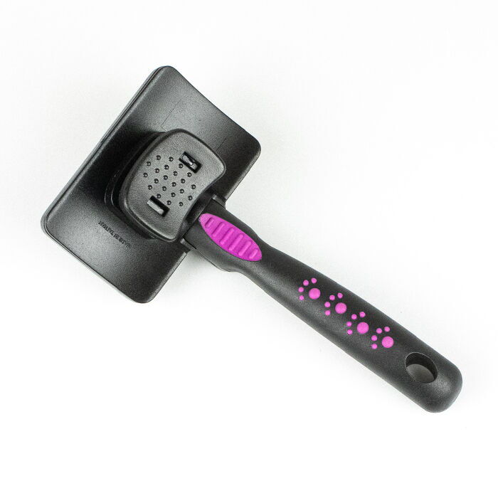 Bag på børsten finder du en knap, som du trykker ind, når karten er fyldt med pelshår. Når du trykker på knappen, vil hårene blive skubbet af børsten, så den igen er fri for pels, og du kan nu komme helt i dybden af pelsen og udnytte børstens fulde potentiale.