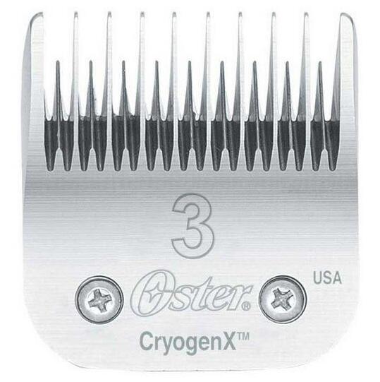 Oster Cryogen-X skær 3 er et professionelt skær fremstillet af hårdmetal, der er behandlet med Osters Cryogen-X proces, hvilket er med til at gøre det ekstremt holdbart og modstandsdygtigt overfor korrosion. Processen øger desuden metallets hårdhed og skarphed betydeligt.