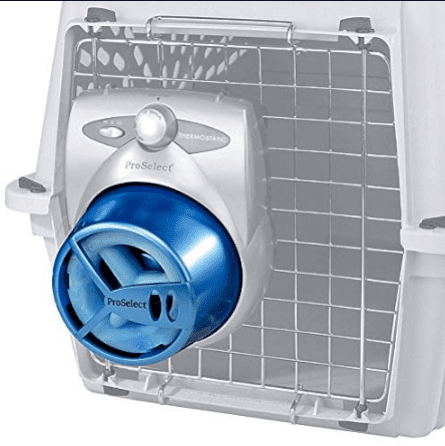 Smart ventilator med køleelement til fastgørelse på hundeburet.