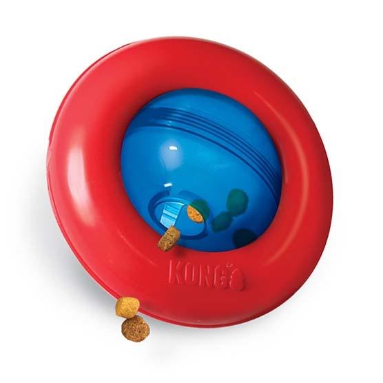 KONG Gyro har en sjov og underholdende måde at bevæge sig på. Aktivitetsbolden drejer og vipper, når hunden forsøger at få godbidderne ud af hundelegetøjet.