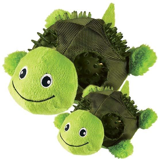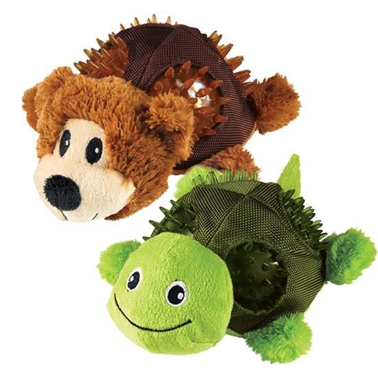 KONG Shells er utroligt søde og sjove bamser, der består af en krop i nylon, plys og pigge af hårdt gummi. Bamsernes mange materialer gør det sjovt for hunden at lege med dem.