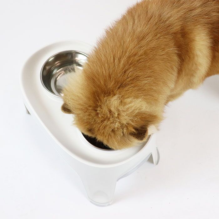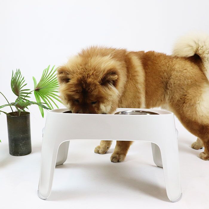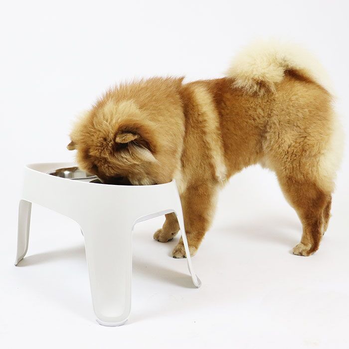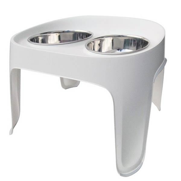 Under de 4 ben er der gummifødder, så foderstationen står godt fast under hundens måltid.