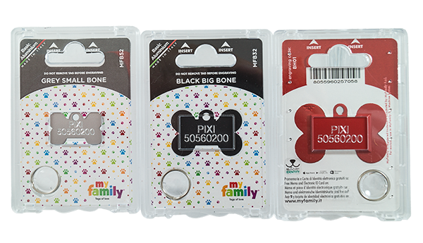 Small Bone 2 linjer á 15 tegn 2,9 x 1,8 cm.