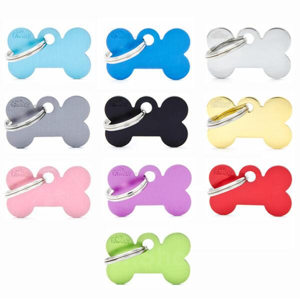 Hundetegn kødben i aluminium med splitring. På dette hundetegn graverer vi på begge sider, så der kan stå mere tekst.