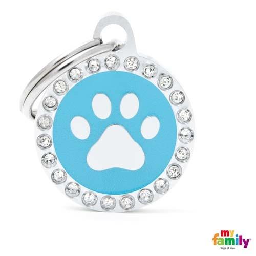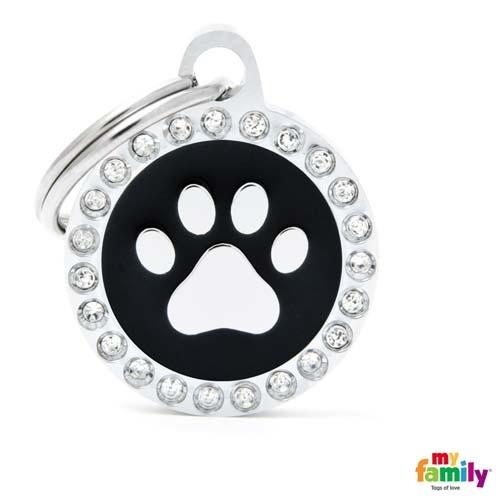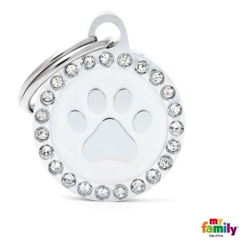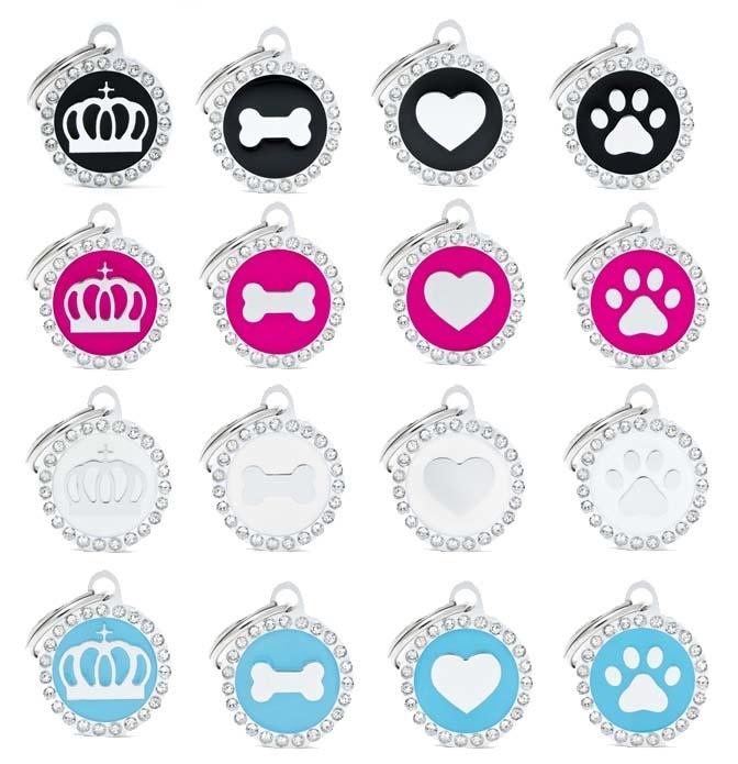 De smukke hundetegn er glaseret i hånden, og udsmykket med glitrende ægte swarovski sten. De fine hundetegn er som et smykke til din hund med dens id-informationer på bagsiden.