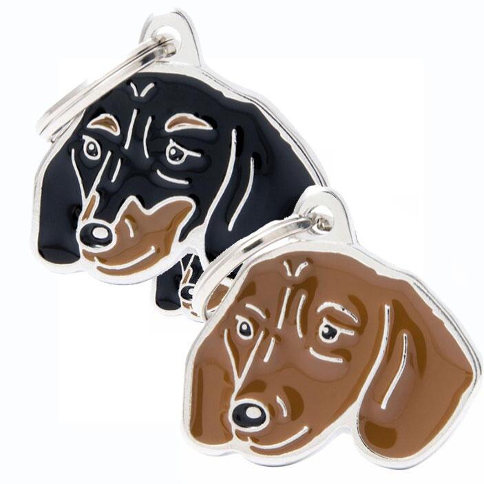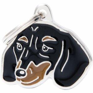Hundetegn MyFamily Gravhund er et stilfuldt hundetegn, som måler ca. 2,9 x 2,6 cm. Det er fremstillet i massivt, håndpoleret aluminium af høj kvalitet og med allergivenlige og nikkel-fri emaljer, som betyder, at du kan bruge det på din hunds halsbånd med god samvittighed. MyFamily er kendt for at lave kvalitetshundetegn i en bred vifte af designs, og dette Gravhund hundetegn er bestemt ingen undtagelse.