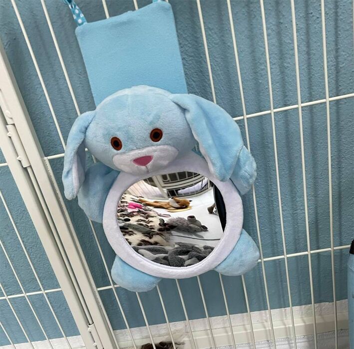 Gør hvalpegården endnu mere hyggelig med et hvalpespejl udformet som en plysbamse.