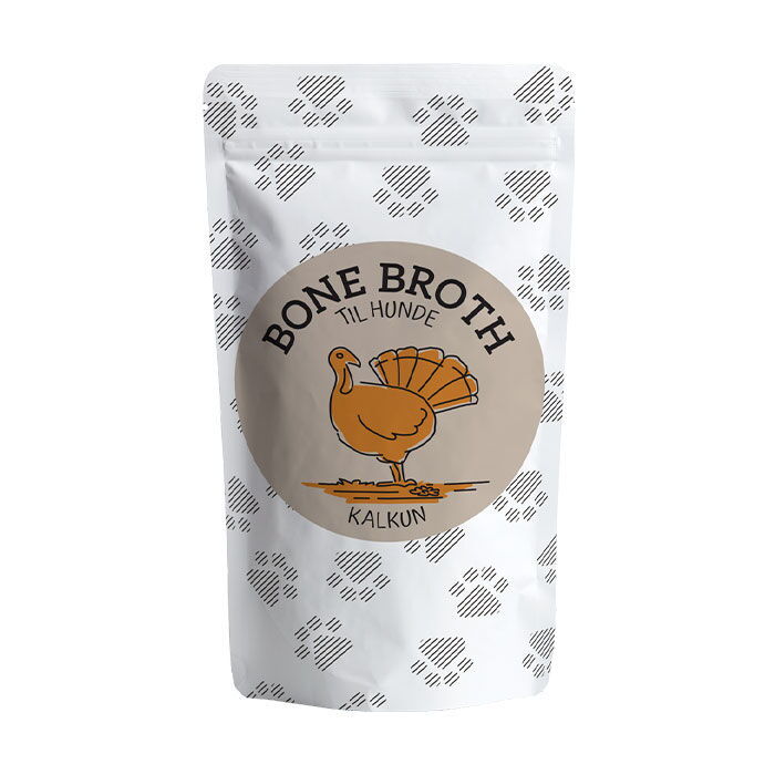 Vores hunde giver Bone Broth kalkun topkarakter, det får deres mundvand til at løbe. Bone Broth er en form for suppe, der tilberedes og koges i flere timer med få ingredienser og er selvfølgelig helt uden salt. Super nemt at anvende direkte ovenpå hundens eller kattens mad
