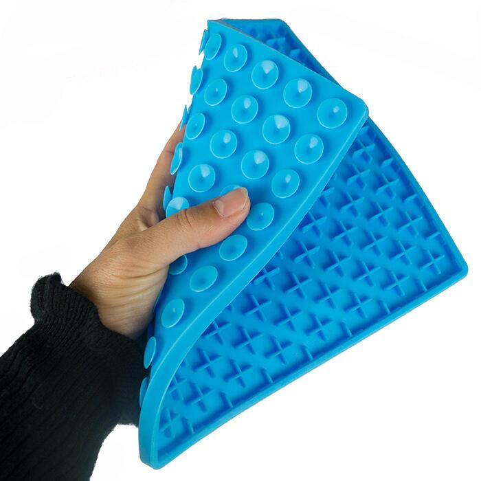 Måtten er skridsikker da den på bagsiden er udstyret med mange sugekopper. Dette gør den velegnet til fastsætning på vægge og derved kan den også bruges i badet. Måtten kan også være god til at stjæle din hunds opmærksomhed under f.eks. negleklipning og børstning.