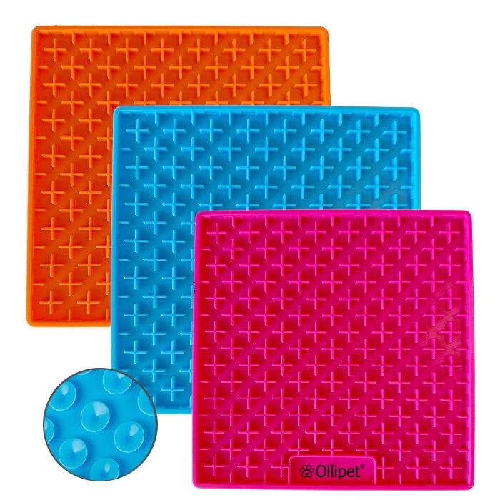 Måtten er blød og lavet med gode dybe furer hvilket gør at maden sidder bedre fast. Kun fantasien sætter grænser for, hvad man kan smøre på Ollipet slikkeplade, prøv f.eks. med forskellig vådfoder, leverpostej, peanut pasta eller páte. Din hund vil altså aldrig blive træt af slikkepladen da fyldet kan altid kan varieres.