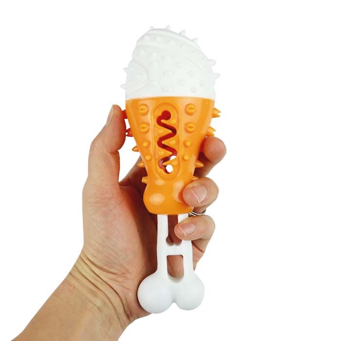 Aktivitets kalkunlår i TPR gummi med flere forskellige funktioner - Sjovt hundelegetøj