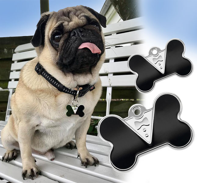 | Medium | 3,8 x 2,5 cm - stor hund | 3 linjer af 22 tegn incl. mellemrum på begge sider |