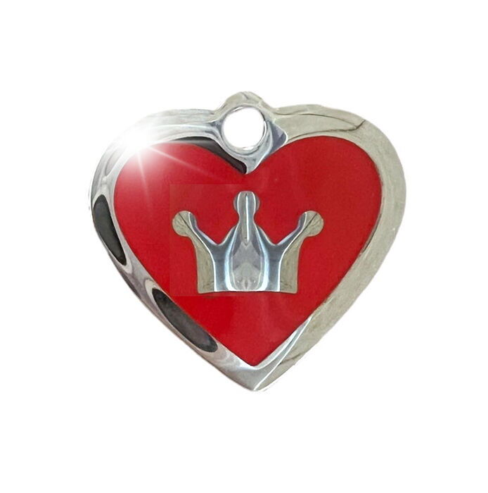 Smukt hundetegn til den lille prinsessehund. Det fine lille hjerte har flot og spejlblank krone og kant, der får det til at glimte i solen.