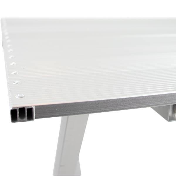 Bordet er lavet helt i aluminium med dele af rustfrit stål - den farvede udgave består af anodiseret aluminium, hvilket betyder, at metallet simpelthen har en farve, og denne ikke skaller af!