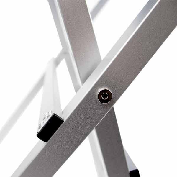 Et elegant og yderst funktionelt trimmebord her lavet i en sammenklaplig, letvægtsversion der på trods af den lave vægt står godt fast på fire justerbare gummiben. Det er så let at betjene, at een person kan klappe det op - eller lukke det sammen, på få sekunder uden brug af værktøj. Bordet fremstår som een samlet enhed, der under transport blot kan bæres ved hjælp af det ergonomiske bæregreb.