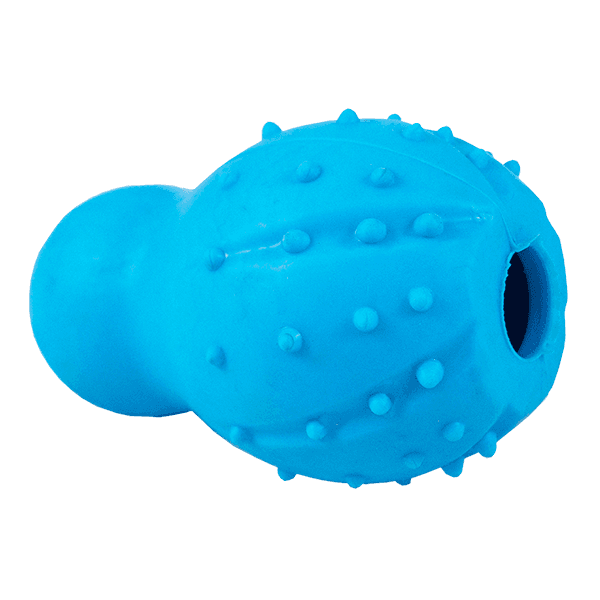 - Keglen har en nopret overflade og er lavet af naturgummi - din hund kan altså bide lige så lystigt i den, som den vil. Den hjælper både med tandrensning og får masseret gummerne samtidig.