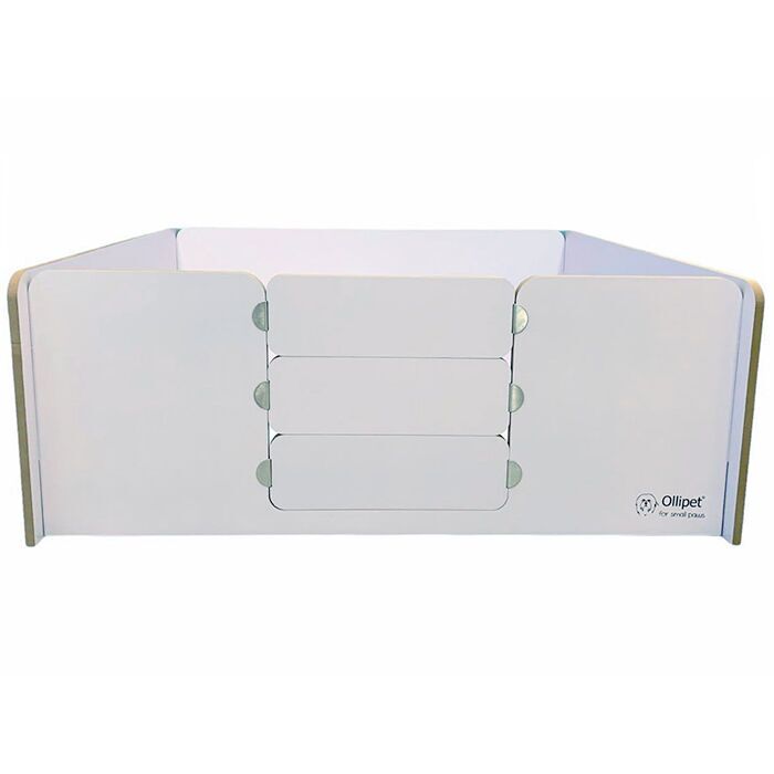 Ollipet WhelpingBox fødekasse måler 88cm x 75cm x 34cm og vi anbefaler, at du lægger et vaskbart tisseunderlag i bunden af Ollipet Whelping fødekassen og derpå et lækkert Vetbed tæppe der holder hvalpene tørre og varme. Farven er pearl white