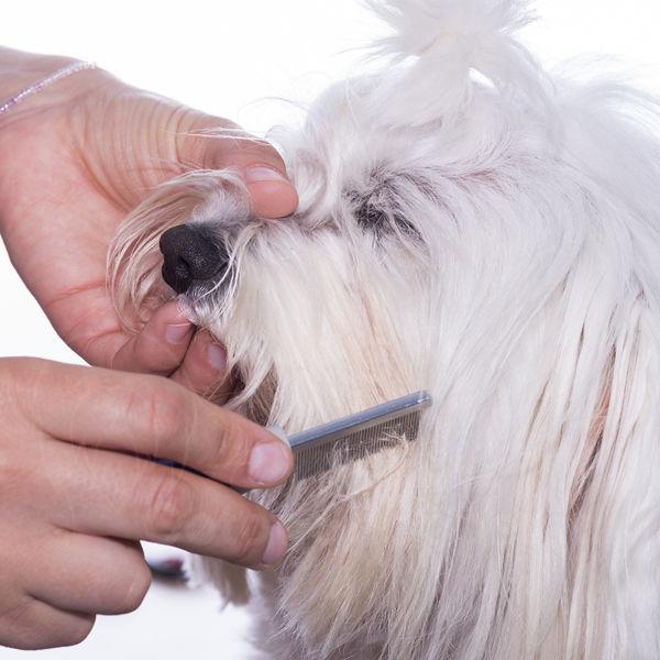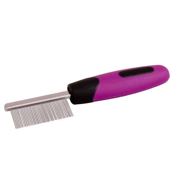 KW Smart mini tættekam er en lille og praktisk kam, der kan bruges til at frisere pelsen i din hunds ansigt. Kammen er alletiders til at frisere hundens skæg eller til at fra snavs og søvnrester fra hundens øjenkrog.
