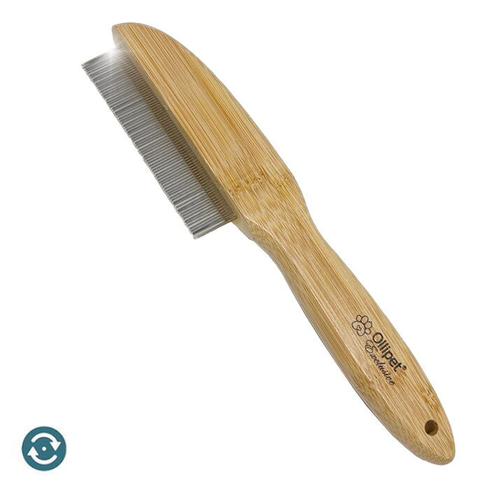 Ollipet Exclusive rullekam med roterende tænder af rustfrit stål og med bambusgreb.