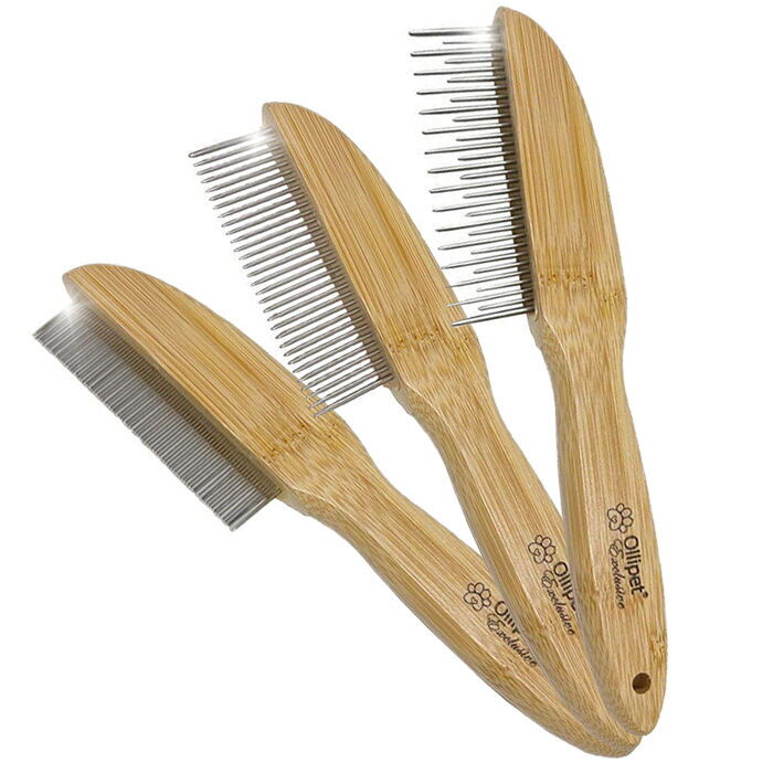 Her har Ollipet fremstillet 3 fantastiske groomingkamme i bambus, med hvert deres formål.