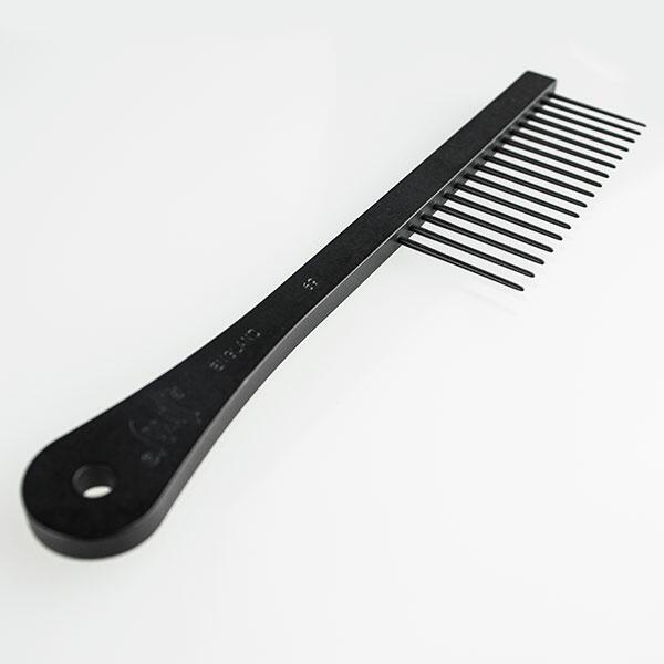 - Kammen der har 17 lange tænder på 25mm fordelt på 7,5 cm. Med denne bredtandet kam kommer du dybden af den lange pels. Dette må siges at være kammen du ikke kan undvære, hvis du har en langpelset hund! En utrolig lækker kam, der på ingen måde slider på pelsen, men holder den sund og lækker. Kammens total længde er 16 cm.