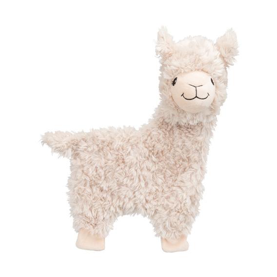 Denne lamabamse fra Trixie er perfekt til en god rusketur. Bamsen har ikke fyld i kroppen, hvilket giver mindre rod, hvis din hund skulle ske at bide hul på den. Samtidig vil din hund elske at kaste rundt med den slaskede bamse.