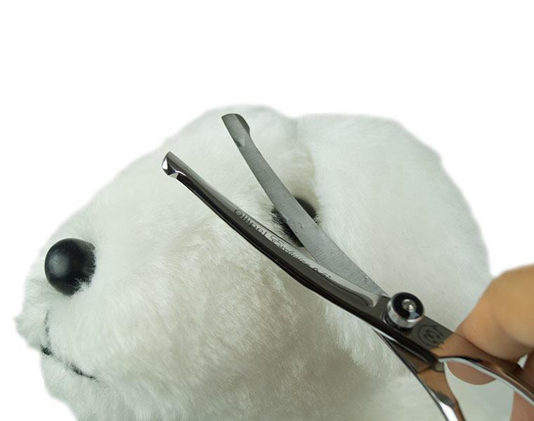 Ollipet har her fremstillet den perfekte groomingsaks til klipning og formning af hundens hoved, men egner sig også til klipning af hundens poter.