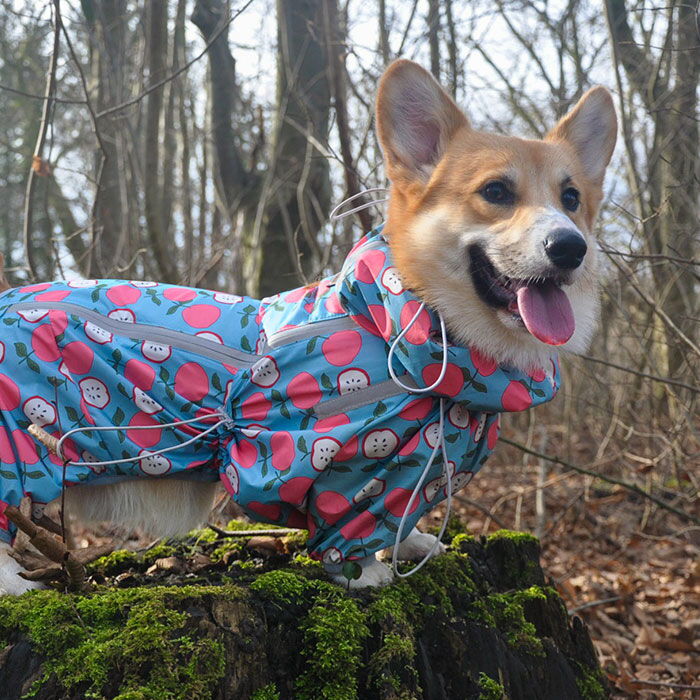 En smart regndragt der henvender sig til både hanhunde og tæver.