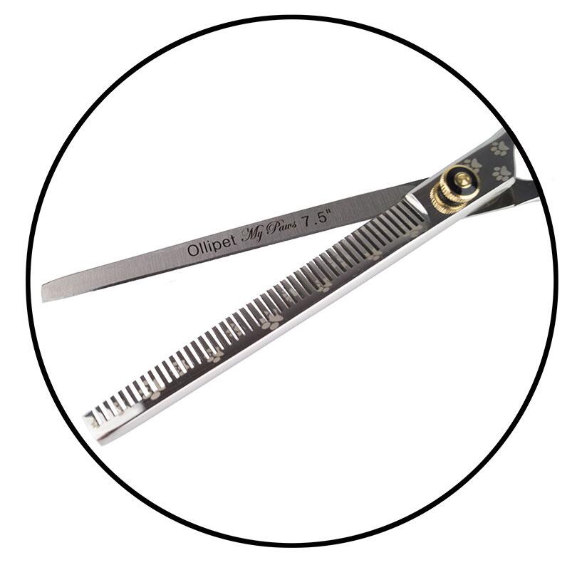 Ollipet My Paws 7,5" groomingsakse er fremstillet af Japansk rustfrit stål J2 420 Stål, HRC ° (hårdhed). Et materiale der giver en absolut professionel hundesaks.