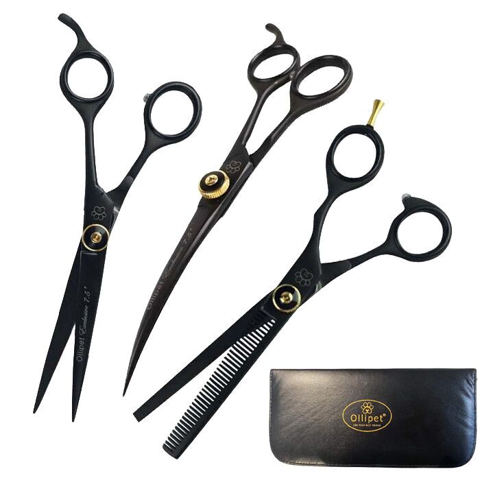 Ollipet 3. stk saksesæt | Groomingsaks + Effilersaks + Buet saks