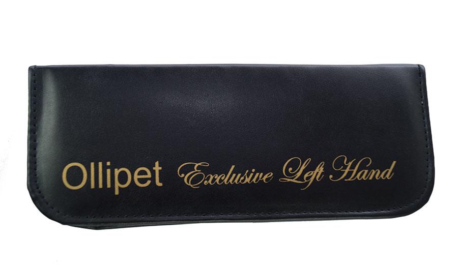 - Med sort lynlås etui med guldtryk "Ollipet Exclusive left hand"