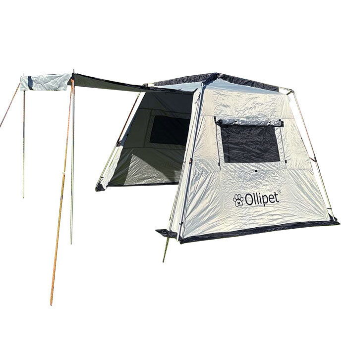 Ollipet hundeudstillingstelt leveres i en kraftig bæretaske af nylon inklusive alle nødvendige pløkke, snore og ekstra stænger til udhænget. Et lethåndterligt og stabilt udstillingstelt der egner sig perfekt til brug på hundeudstillingen eller anden udendørsaktivitet. Teltet er uhyre let at slå op, og kan opstilles på kun cirka ti minutter af en person. Dog anbefales der to personer til opstilling, hvis det ikke er vindstille.