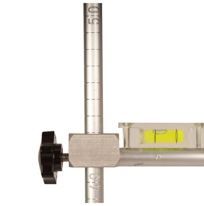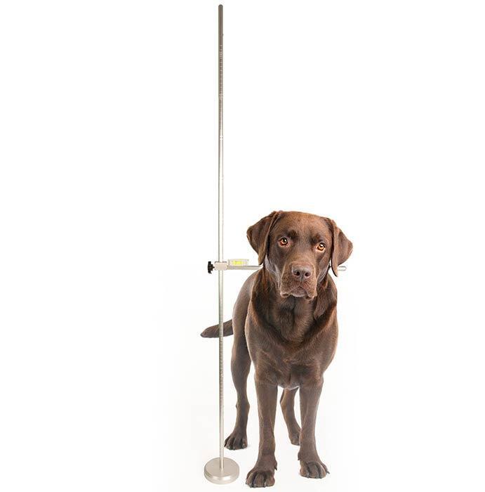 Forsynet med vaterpas, der gør målingen af hundens skulderhøjde 100% præcis.