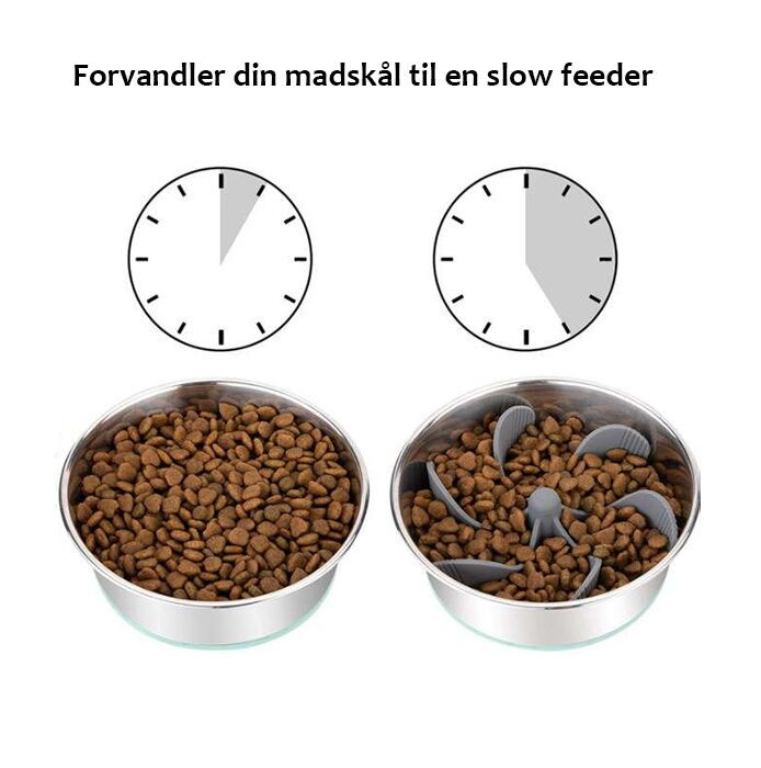 Silikone slow feeder indsats kan på få sekunder forvandle din hunds madskål, så den ikke sluger sit foder.