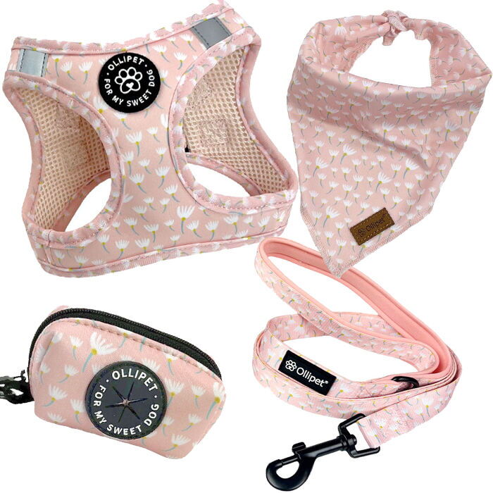 Ollipet City Lux Serie med Lyserøde Blomster indeholder alt det nødvendige udstyr til dine udendørs oplevelser. Med den komfortable sele, den pålidelige line og den praktiske høm høm-taske er I klar til at erobre byens gader med stil og bekvemmelighed.