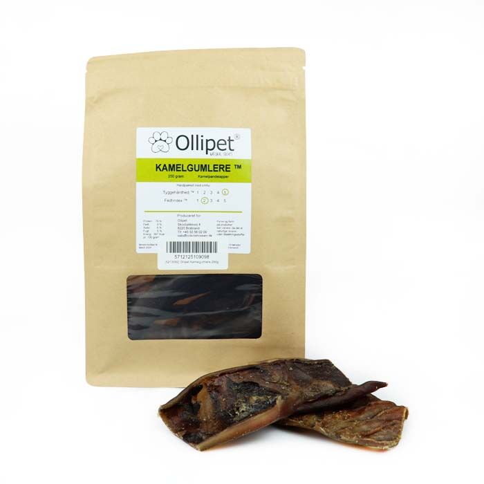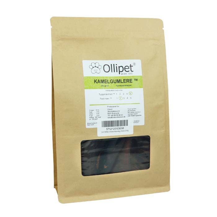 Ollipet Kamelgumlere har et lavt fedtindhold og er en sund og naturlig snack til hunde. OBS: Farve og form kan varierer da det er naturlige råvarer uden tilsætningsstoffer.