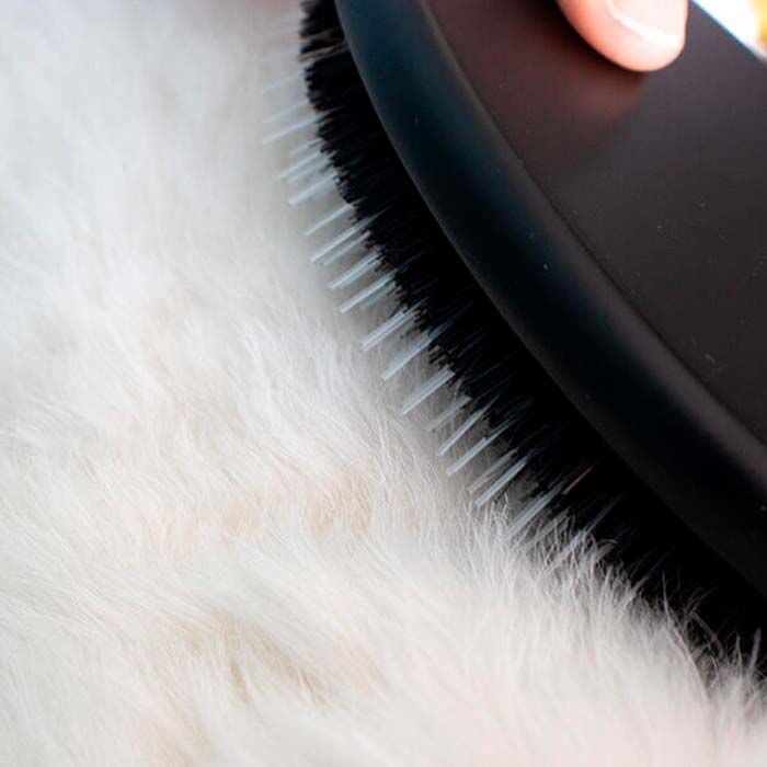 Giver ekstra glans til pelsen, og reden den samtidig skånsomt igennem uden at slide på det enkelte pelsstrå.