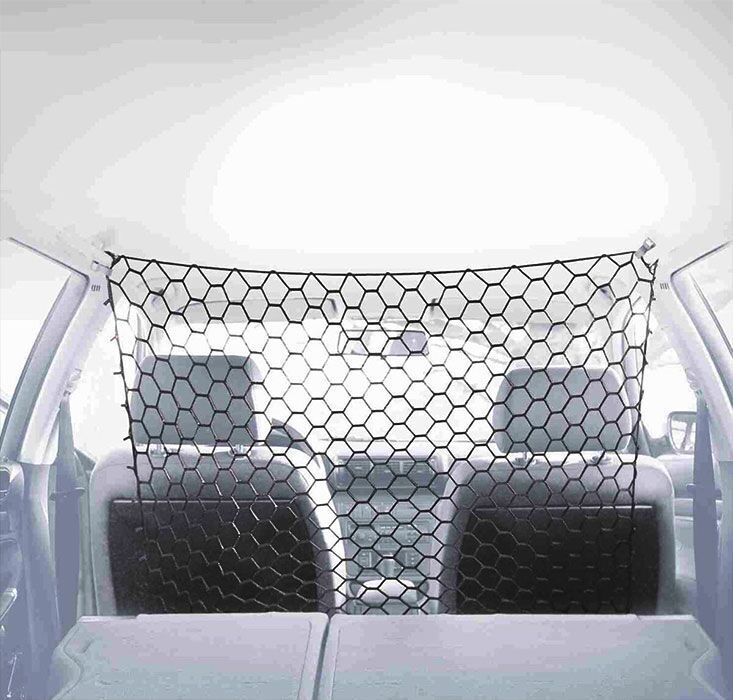 Dette beskyttelsesnet kan du sætte op mellem forsædet og bagsædet, så din hund ikke længere har muligheden for at forsøge at hoppe om foran.