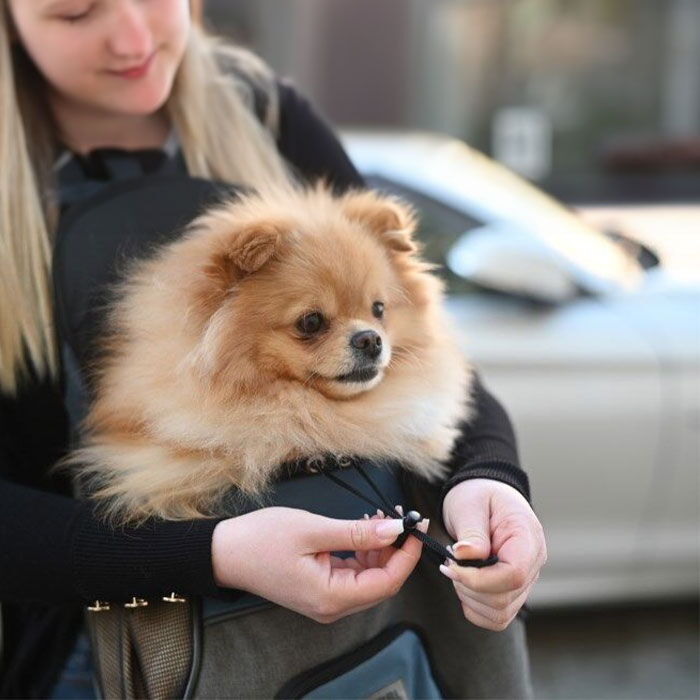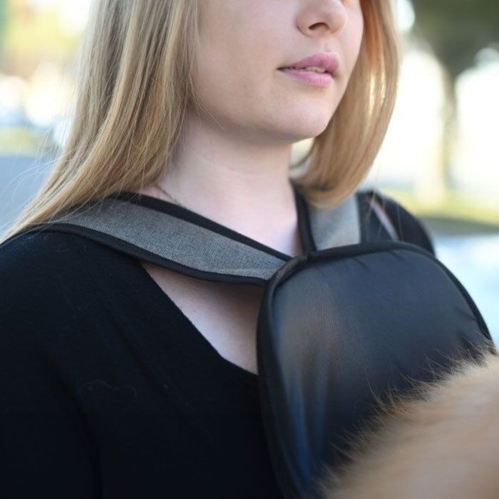 - Lader dig bære din hund på maven, hvor du kan se den