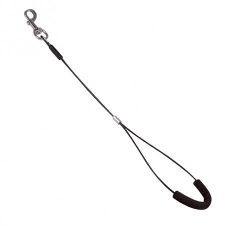 Løs strop i høj kvalitet til din trimmebordsgalge. Er udført i plasarmeret stålwire og fastgøres med karabinhage. Uundværlig til fiksering af din hund under groomingarbejdet. Designet gør, at den er behagelig for hunden at have på og ikke filtre pelsen, da den er helt glat.