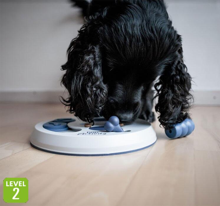 For at spillet bliver ved med at være interessant så længe som muligt, skal hunden bruge forskellige teknikker for at få fat i godbidderne. Nogle af fordybningerne, du gemmer godbidderne i, har skydelåg, mens andre af klap. Derudover medfølger to kegler, som din hund skal løfte op af fordybningen, for at finde frem til godbidden.