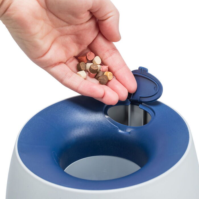 Når du har fyldt Ball & Treat med godbidder, kan legen begynde! Kast bolden og lad din hund hente den. Når hunden har hentet bolden, skal den placere den i legetøjets åbning, hvorefter den vil blive belønnet med godbidder, der automatisk falder ud af maskinen.