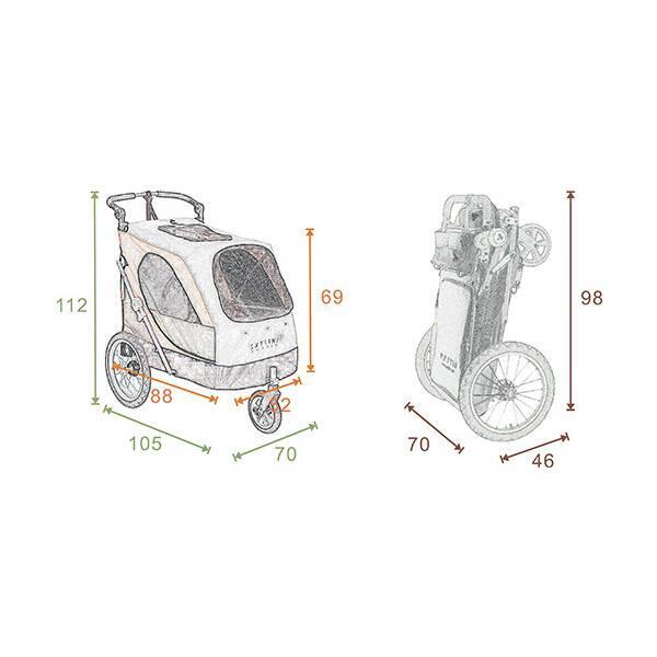 Hjulene kan afmonteres, hvorefter selve kabinen kan bruges som hundebur, f.eks. bag i din bil, hvilket giver din hund/hunde en sikker kørsel. Derudover er der Lynlås-åbning på strolleren både for og bagtil, hvilket gør det nemt at få din hund ind og ud af vognen.