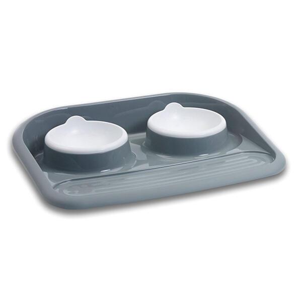 Flot og enkel madbar i grå og hvid. Et stilrent valg der ser pænt ud i hjemmet, og holder gulvet rent fra madrester. Her kan du servere vand, tør og vådfoder til din bedste ven og