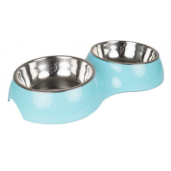 Denne dobbelte mad- og vandskål sørger for, at hunden har sit foder og vand på et samlet sted.